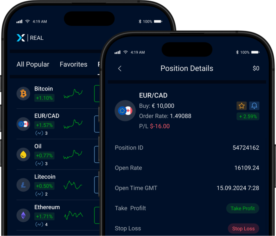 Stay connected to the markets at all times with XTrade's robust mobile app, accessible on both iOS and Android devices. Take advantage of real-time charting, monitor your open positions, and easily set your desired take profit levels, all while enjoying a wide range of powerful trading tools.